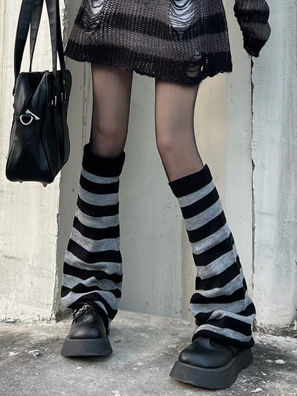 Punk Cross Striped Leg Warmer