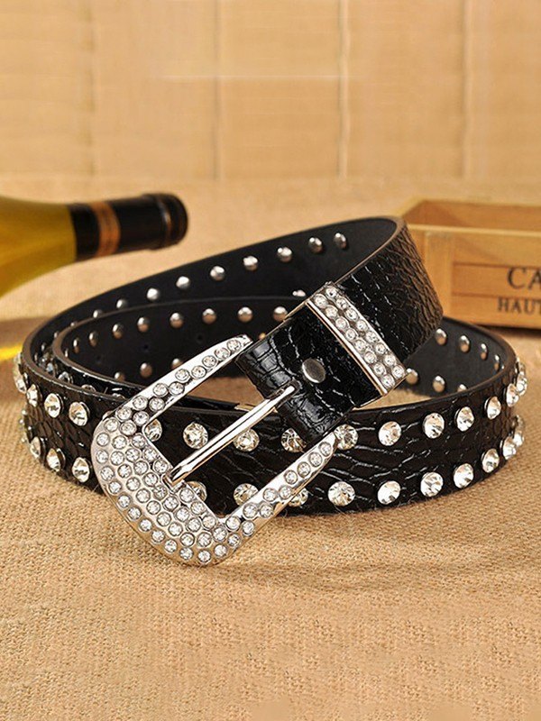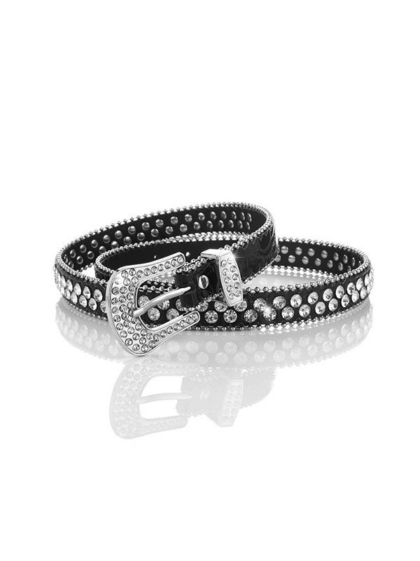 Double Rhinestone Pu Leather Belt