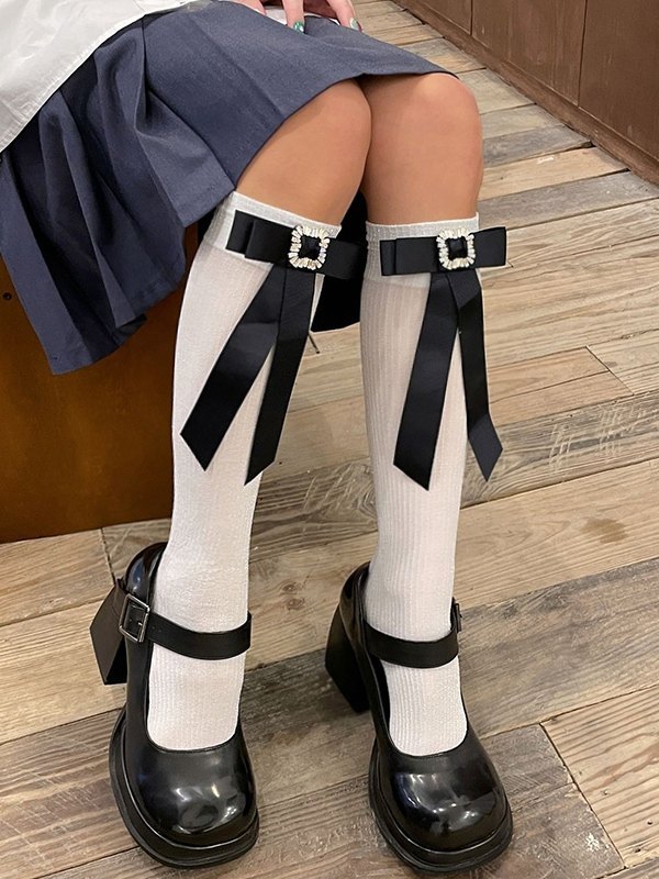 Rhinestone Bow Embellish Knee High Socks