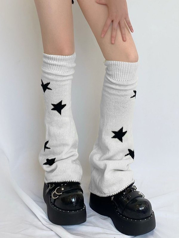 Reverse Star Jacquard Knitted Leg Warmer