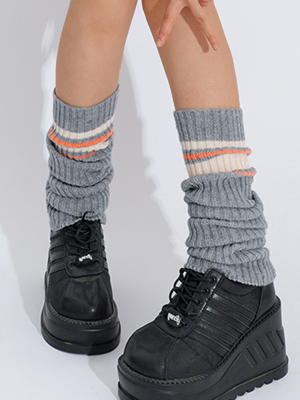 Preppy Ribbed Stripe Splice Leg Warmer