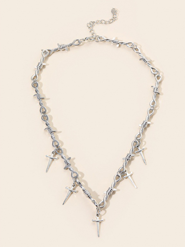 Rhinestone Cross Pendant Faux Pearl Choker Necklace
