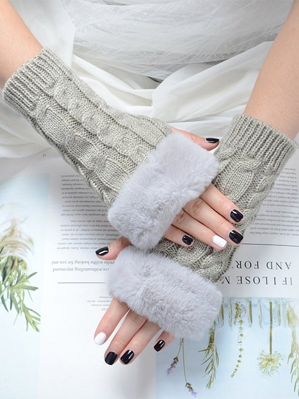 Faux Fur Trim Cable Knit Fingerless Gloves