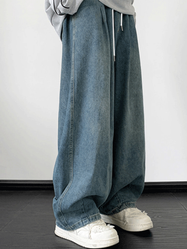 Men’s Vintage Wash Drawstring Loose Jeans