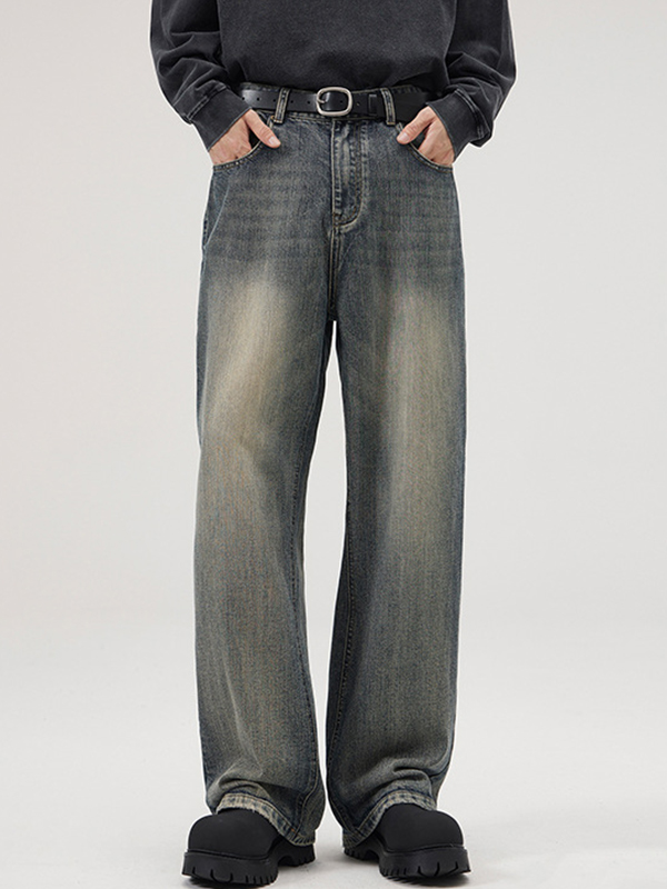 Men’s All-Match Slimming Wide Legs Slightly Flared Wash Loose Jeans