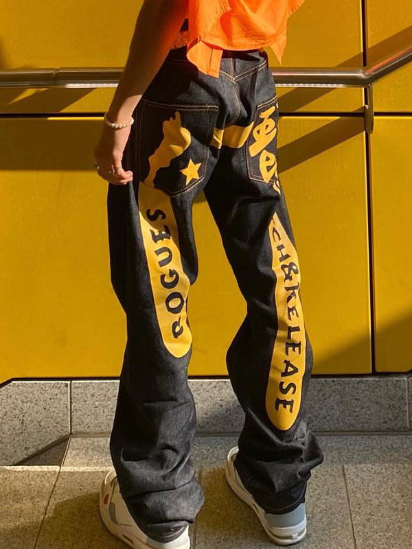 Men’s Camo Splash Ink Print Side Zip Up Loose Jeans