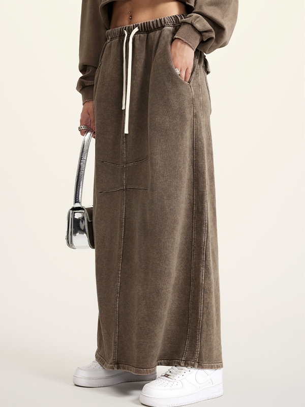 Knitted Slim-Fit Solid Color One Piece Maxi Skirts