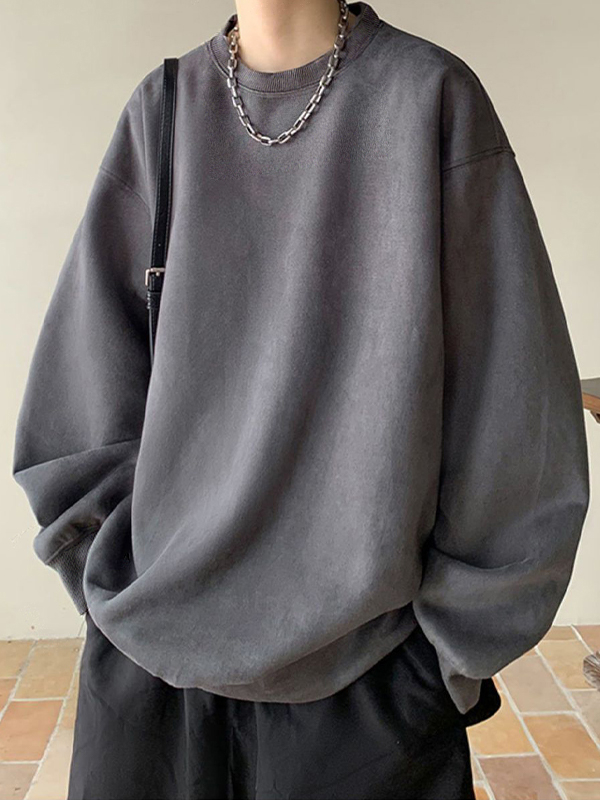 Men’s Solid Color Twill Crew Neck Sweatshirt