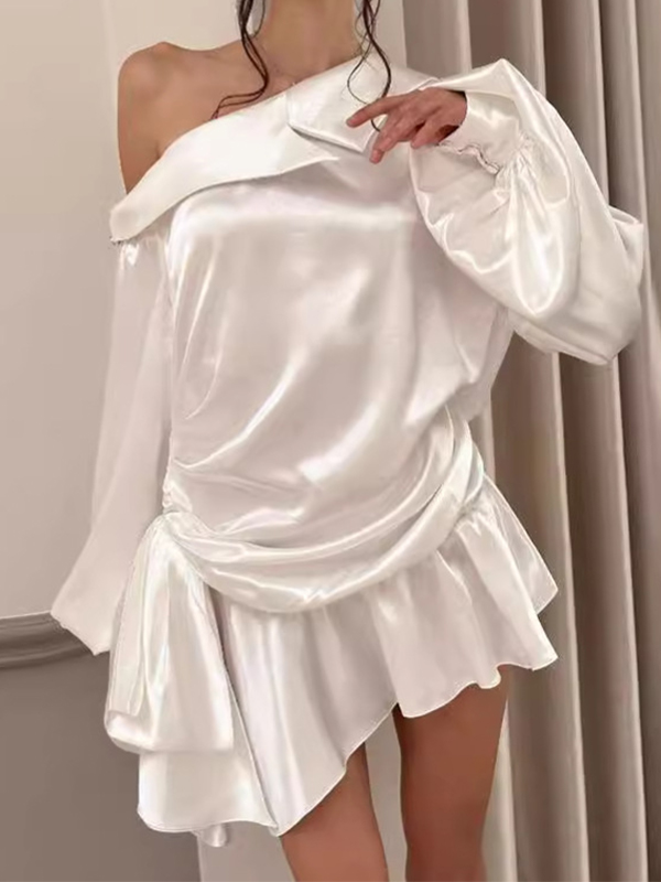 One Shoulder Solid Color Backless Long Sleeves Mini Dresses