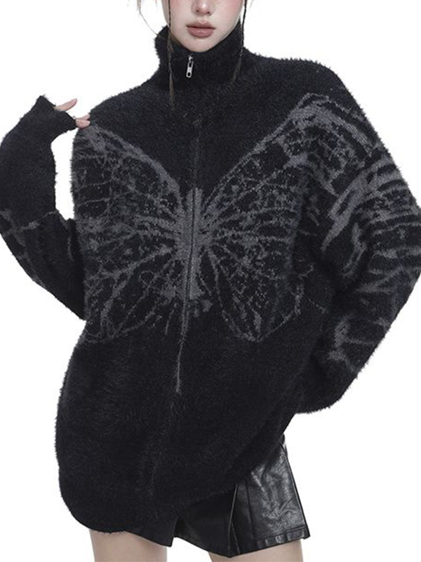 Contrast Color Spider Print Full Zip Oversized Hoodie