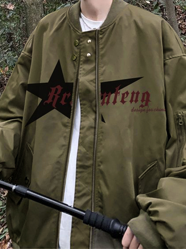 Men’s Star Print Zip Up Pocket Cargo Jacket