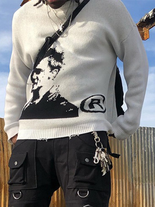 Men’s Portrait Print Crew Neck Sweater