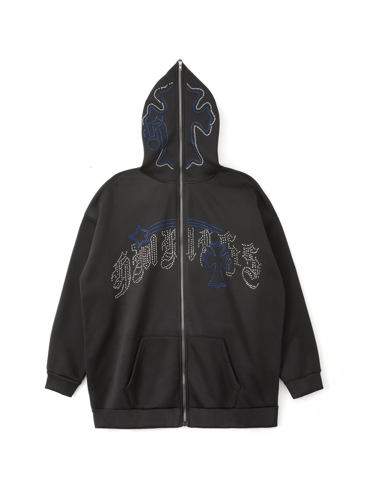 Men’s Punk Rhinestone Cross Zip Up Hoodie