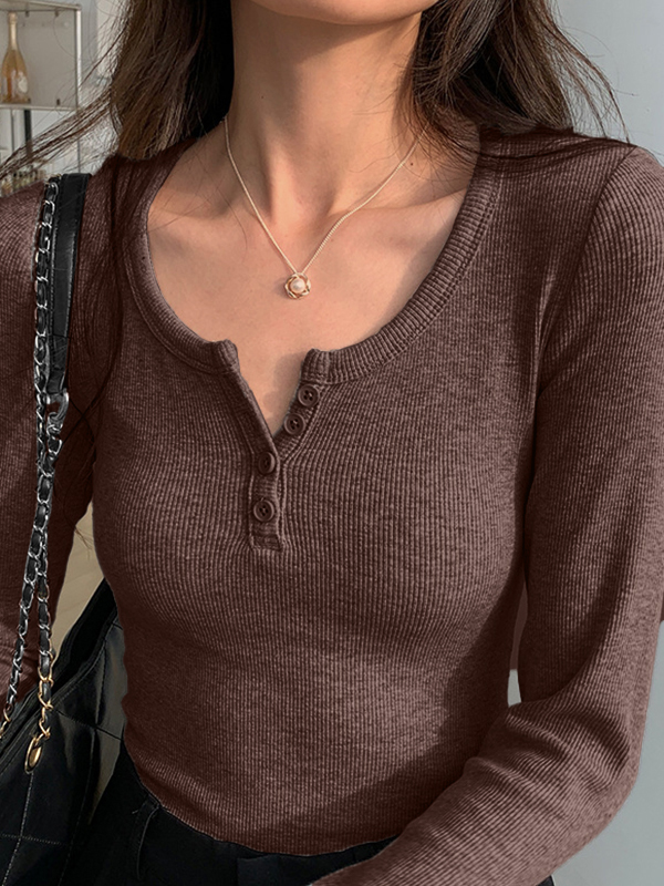 Solid Color Rib High Elastic Breasted Long Sleeve Knit