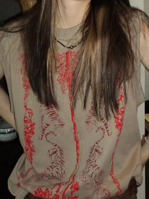 Retro Printed Loose Tank Top