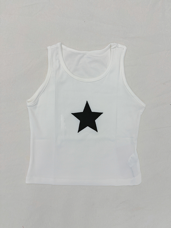 Star Embroidered Rib Cropped Tank Top