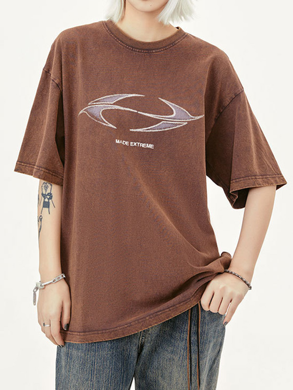 Men’S Spider Print Washed Oversized Short Sleeve Tee