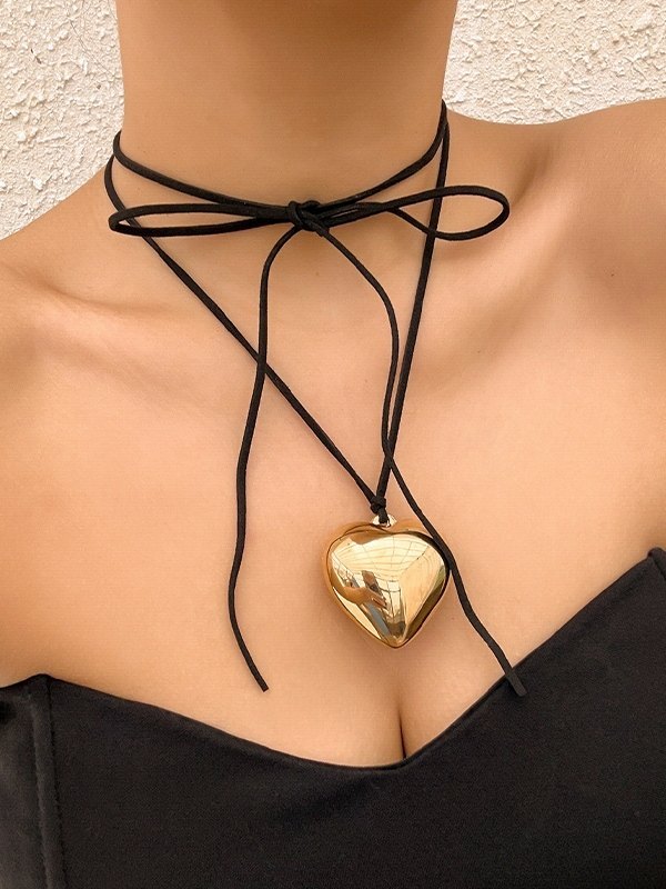 Adjustable Chunky Heart Charm Necklace