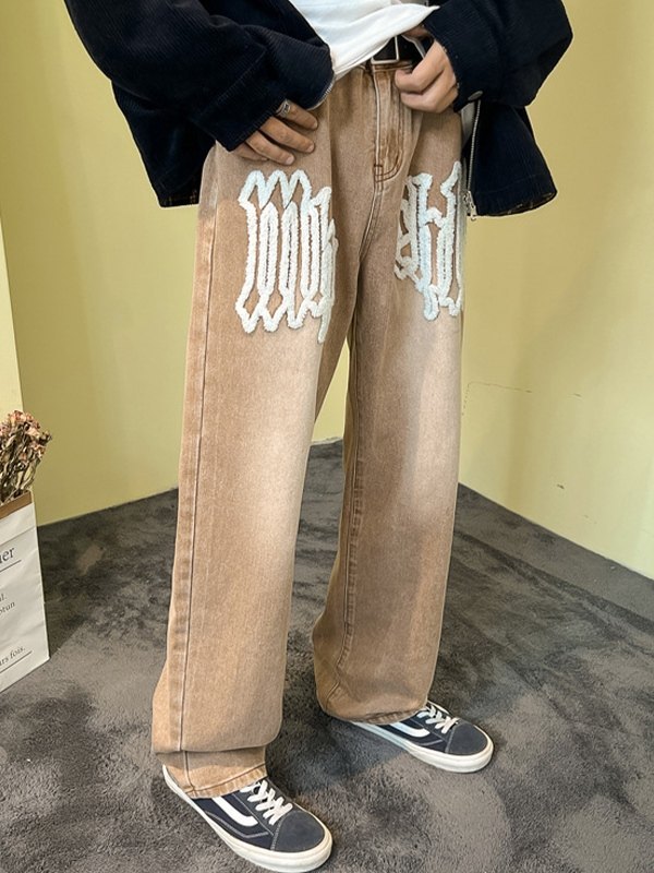Men’s Vintage Wash Straight Leg Loose Jeans