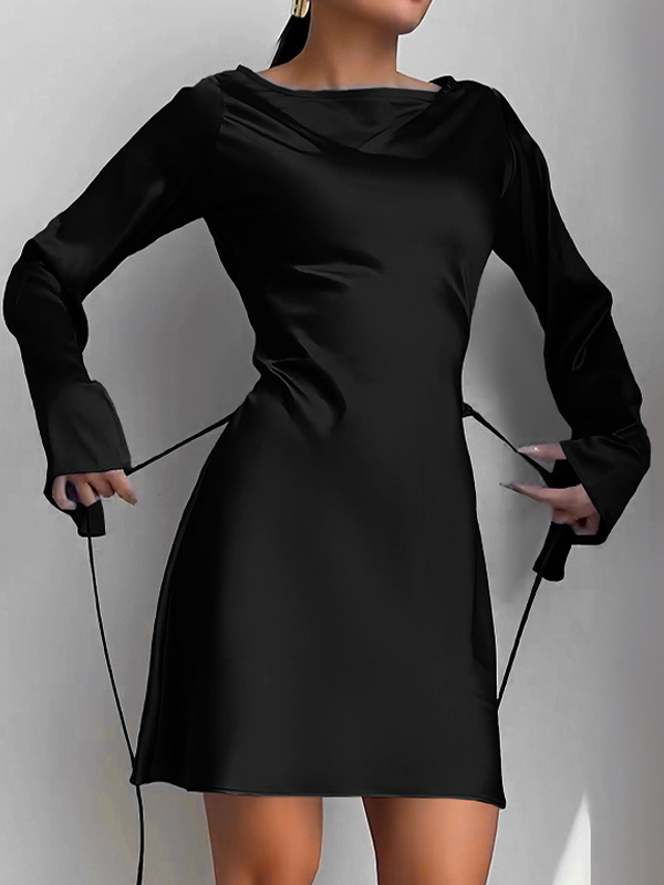 Temperament Waist-Cinching Straps In Satin Mini Dresses