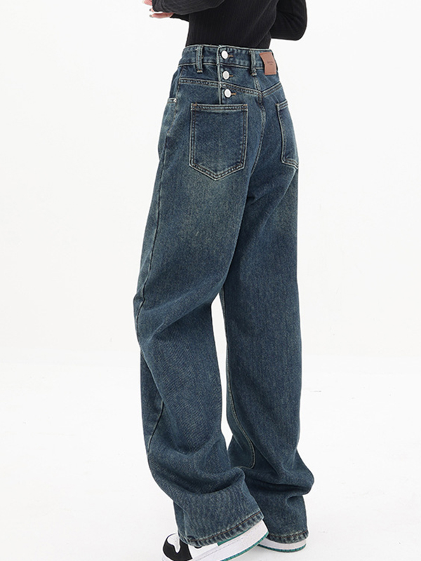 Multiple Buttons At Back Waist Boyfriend Jeans