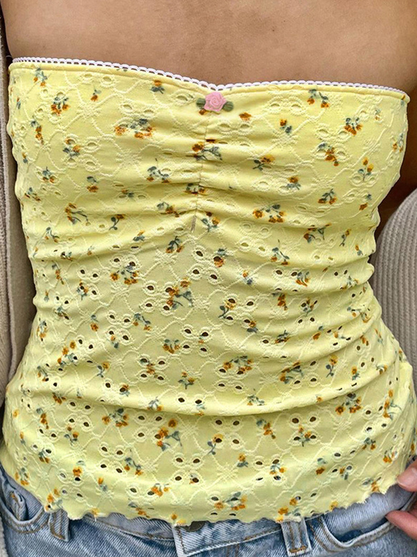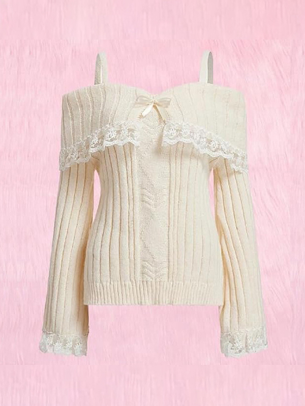 Lace Trim Splice Square Neck Crop Long Sleeve Tee