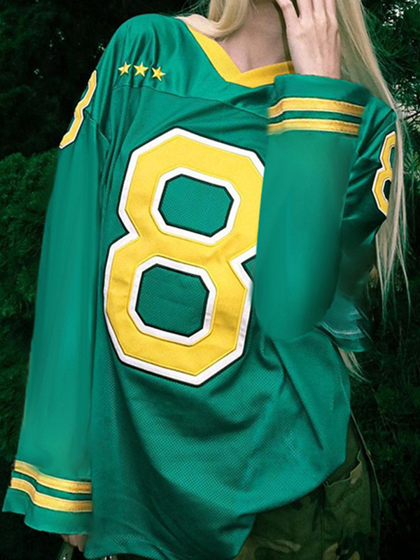 V Neck Star Digital Print Oversized Long Sleeve Tee