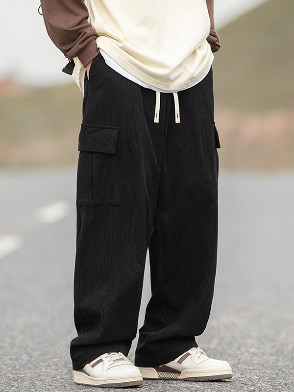 Men’s Corduroy Flap Pocket Lace Up Cargo Pants