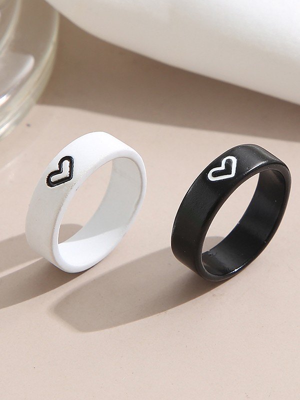 Style: Casual/Street/Vintage/Y2K/SweetPattern Type: HeartMaterial: AlloyType: Couple RingQuantity: 2pcsOccasion: Going Out/Holiday/Festival/Dating/Wedding
