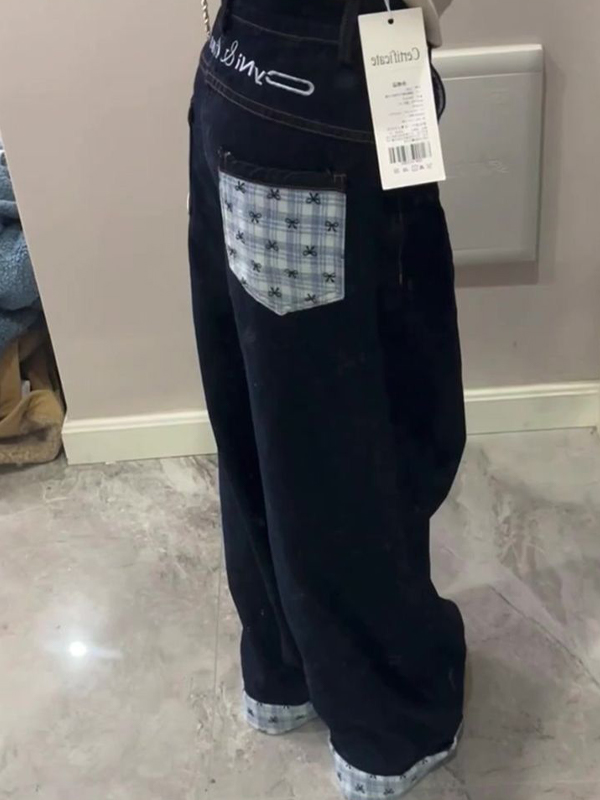 Be the first to review “American Retro Bow Grid Boyfriend Jeans”