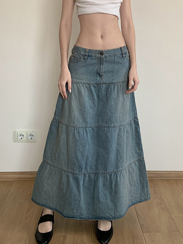 Style: Casual/Street/Y2K/Sweet/Vintage/PreppyFabric Content: PolyesterFit Type: Slim FitLength: Maxi Skirt