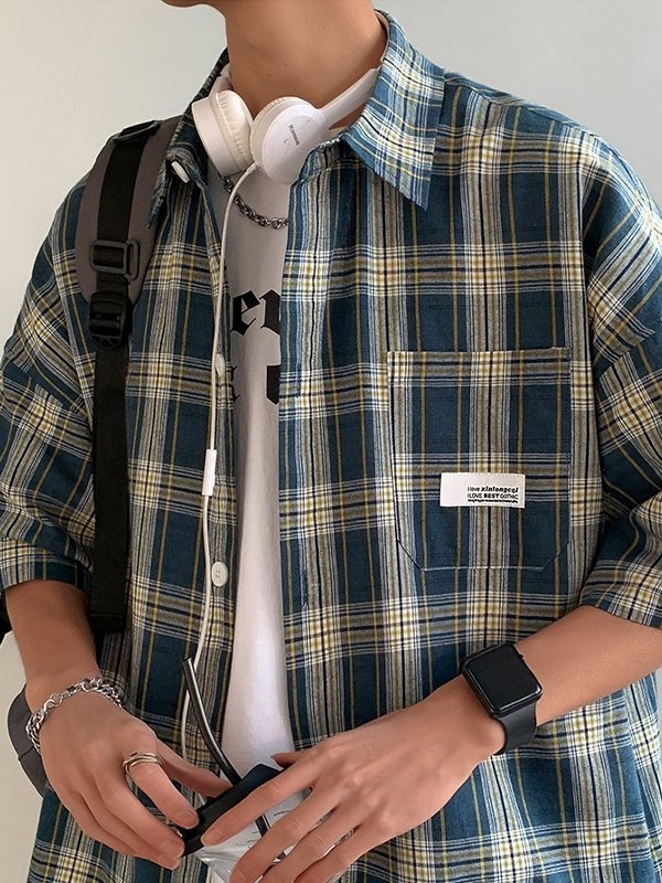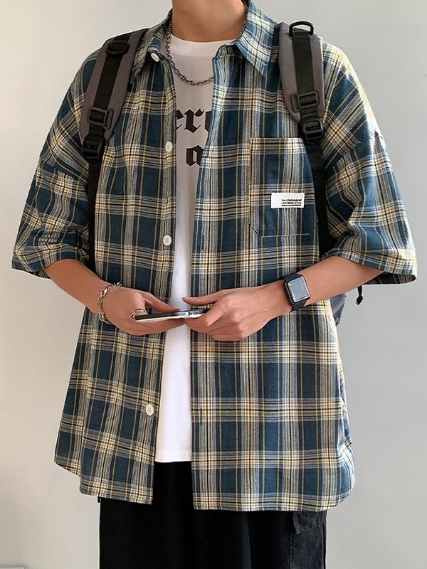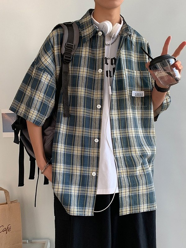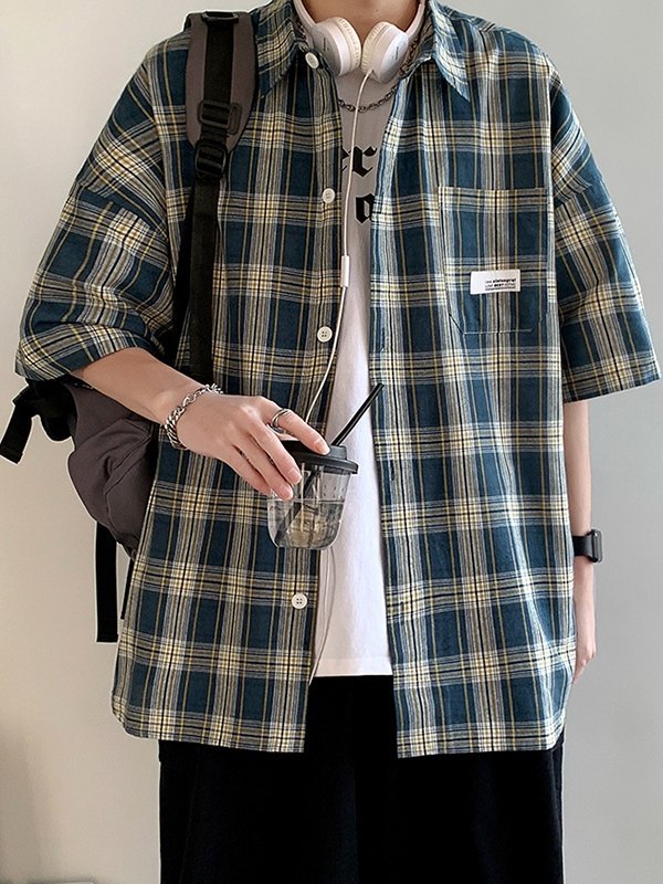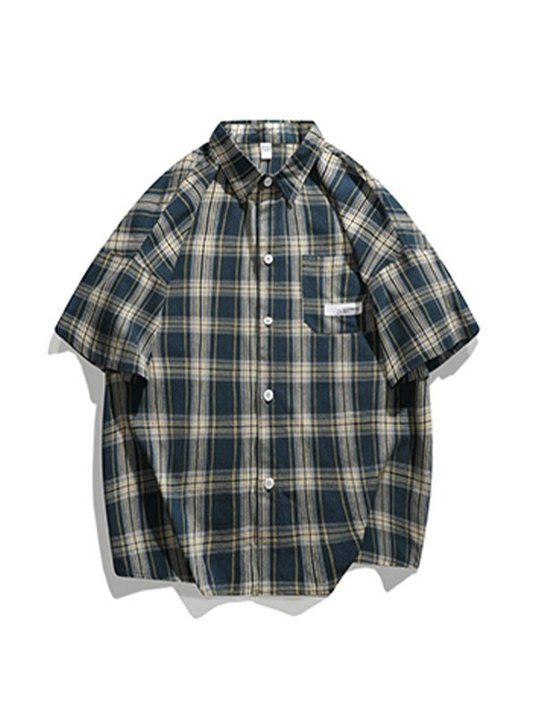 Style: Casual/Street/Preppy/Vintage/Hip Pop/WorkwearPattern Type: Geometric PrintFabric Content: Polyester, CottonFit Type: Loose fitNeckline: Turndown CollarSleeve Length: Short Sleeve