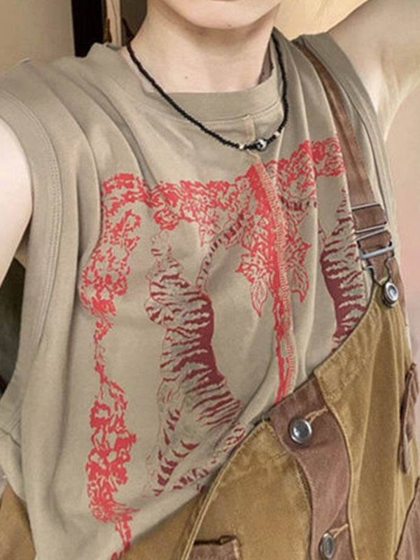Style: Casual/Street/VintageFabric Content: CottonFit Type: Loose fitNeckline: Crew NeckSleeve Length: Sleeveless