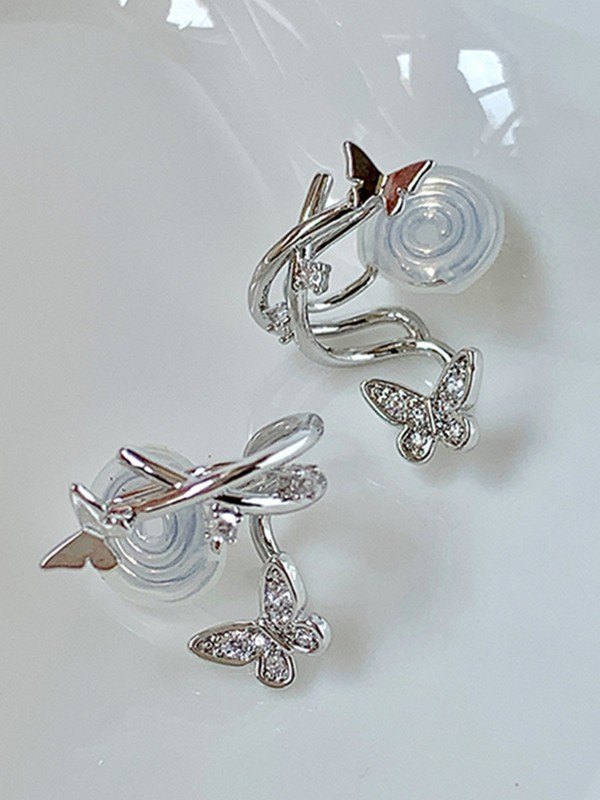 Style: Casual/Street/Vintage/Sweet/Y2K/Fairycore/ElegantPattern Type: ButterflyMaterial: Alloy,RhinestoneQuantity: 1pairType: Ear CuffsOccasion: Holiday/Going Out/Festival/Travel/Dating/Party/Wedding