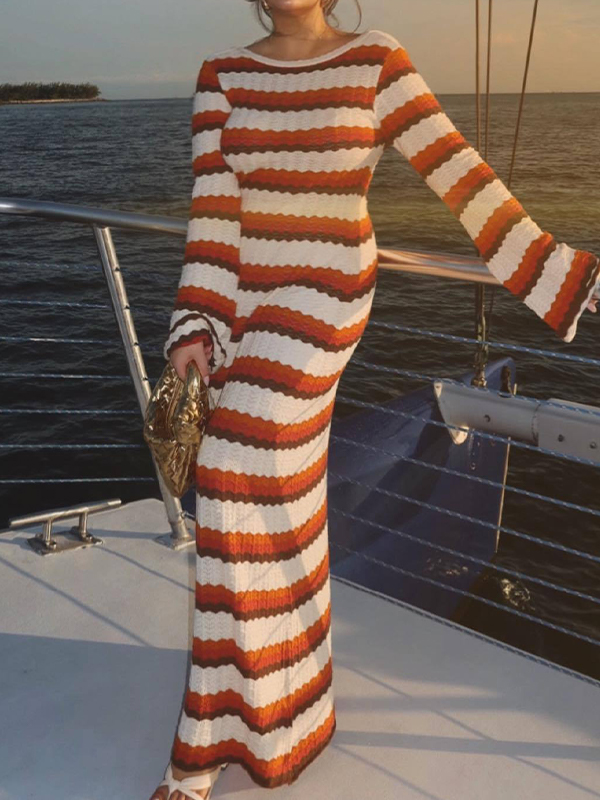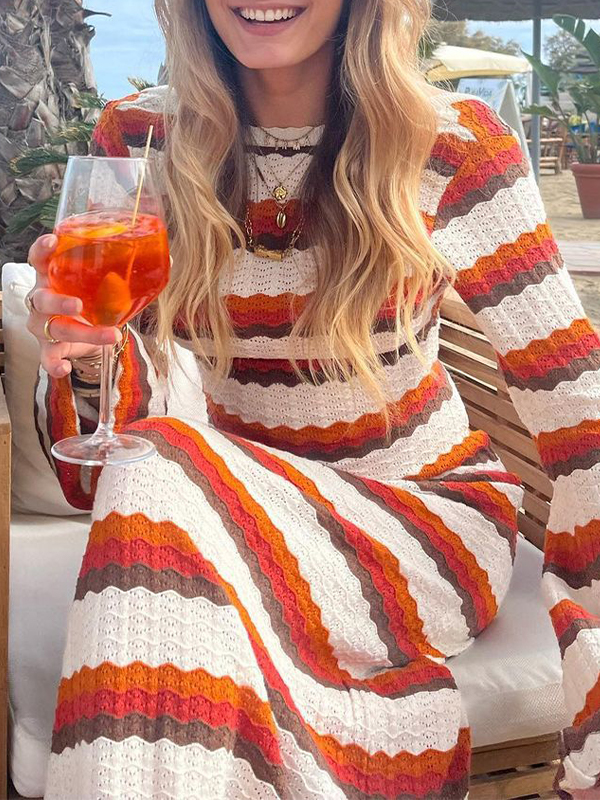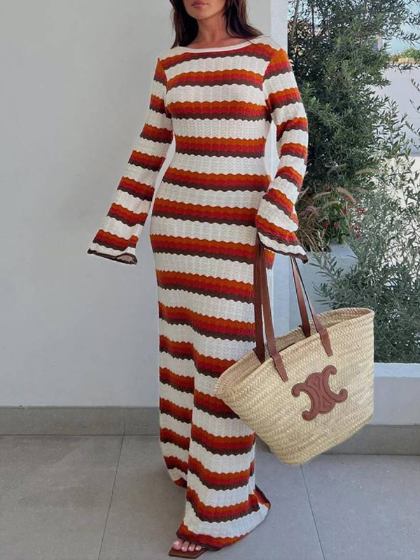 Be the first to review “Striped Contrast Knitted Hollow Maxi Dress”