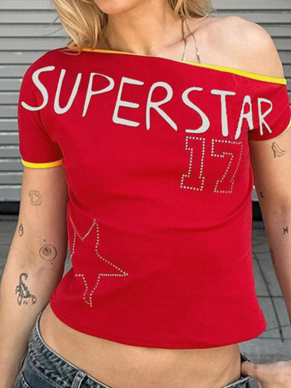 Solid Off Shoulder Tee&Three-dimensional Flower Skirt Set
